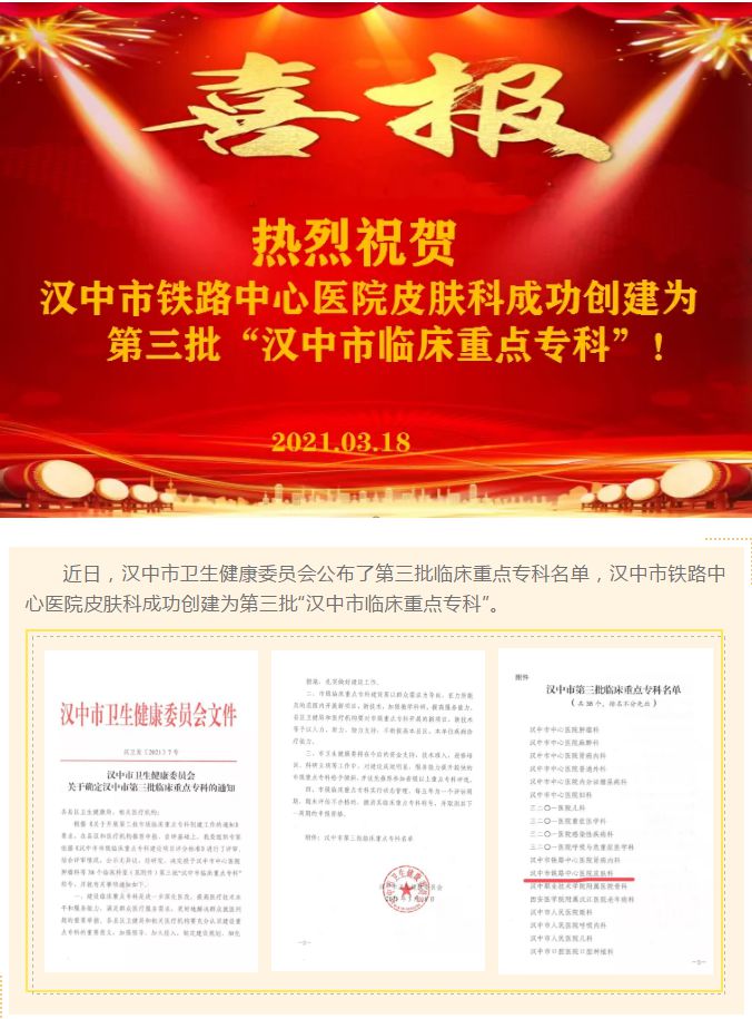 喜报!我院皮肤科成功创建为第三批“汉中市临床重点专科”