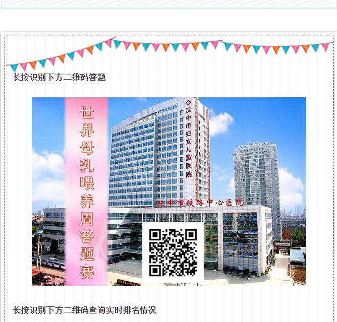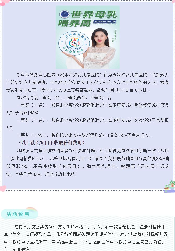 “支持母乳喂养,守护健康地球” ——汉中市铁路中心医院2020年世界母乳喂养周有奖答题赛