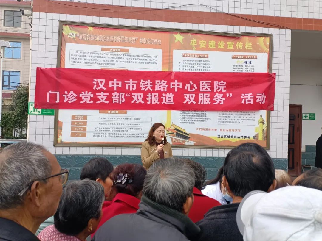 汉中市铁路中心医院党委积极响应“双报到、双服务” 机制,扎实推进落实“进社区,送健康”活动,精准对接基层健康需求;支部创新服务模式,医院党员医护团队深入乡村、社区、敬老院等开展免费健康义诊活动,将优质医疗资源送到乡亲家门口,既满足了村民多样化的健康需求,同时也切实解决了乡村群众“看病远、看病难”的实际问题,做到了“早发现,早治疗”,备受村民欢迎,收获了一致好评。