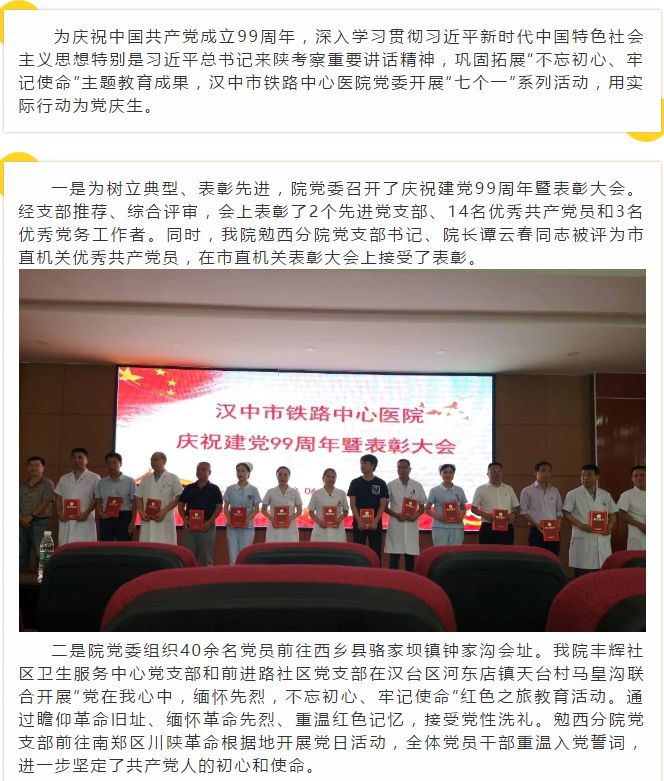 汉中市铁路中心医院组织党员干部上好“红色课堂”